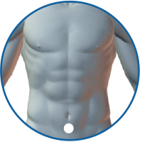 Dos dedos por debajo del ombligo.