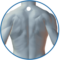 Debajo de la 7ª vértebra cervical (parte alta de la espalda).
